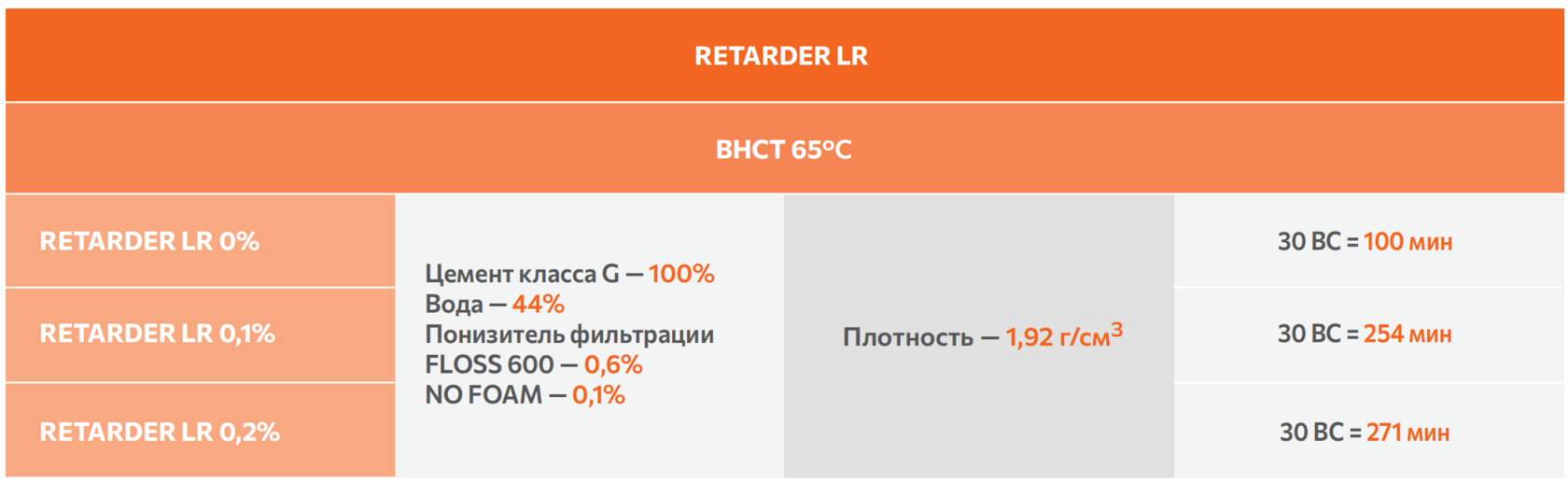 Эффективен при загрузках от 0,1% до 0,7% по массе цемента в зависимости от температуры, состава цементной смеси и требуемого времени загустевания.